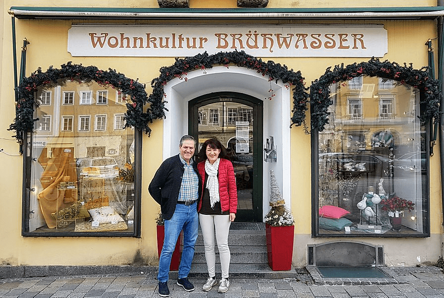 Mit der Geschäftsübernahme durch Gabriele und Xaver Brühwasser im Jahr 1988 wurde die Produktpalette laufend erweitert und dem aktuellen Zeitgeist angepasst. Seit 1991 befindet sich das Unternehmen am Stadtplatz 56.